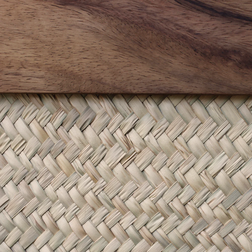 - Materiales: Está fabricada con un marco de madera oscura y robusta, que proporciona una estructura sólida. El panel central presenta un tejido de material natural, ratán natural, ratán sintético o caña, en un tono beige claro.