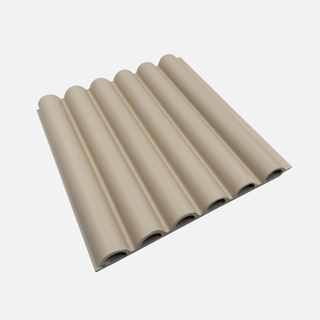 Lambrín de Interior tipo flauta chica. El panel WPC para interiores está compuesto por un 60% de resina de madera y un 40% de PVC, y está acabado con un revestimiento de alta calidad que ofrece texturas realistas y colores sólidos para adaptarse a cualquier estilo de decoración.