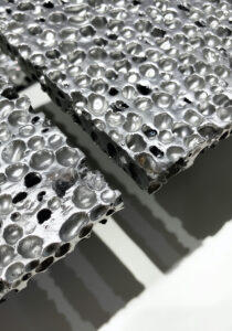 Fabricación: Se produce con aluminio fundido y partículas cerámicas que estabilizan las burbujas de aire, formando paneles sólidos pero ligeros.