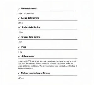 Se venden por pieza. Medidas: 1.22 m de ancho x 5 mm de grosor x 2.44 m de largo.
