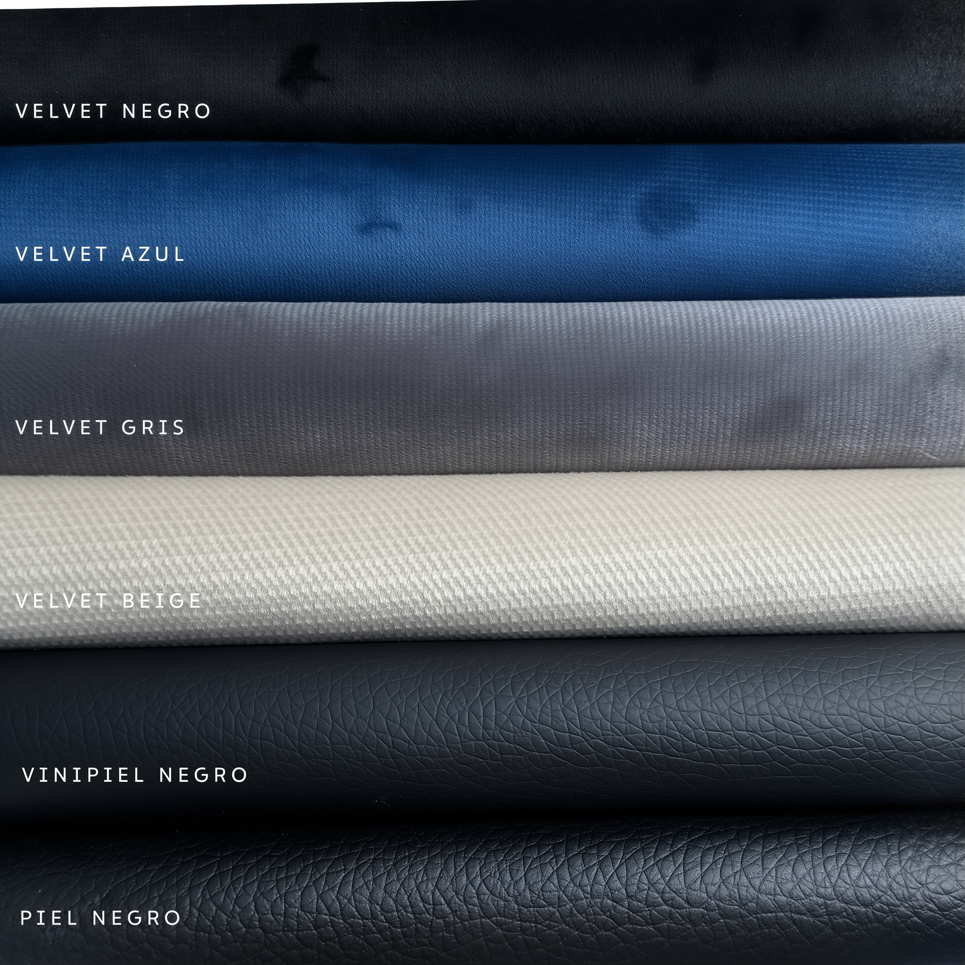 | Tapiz | Boucle Capuchino, Boucle Gris Oxford, Boucle Marfil, Boucle Marino, Boucle Negro, Boucle Plata, Boucle Shedron, Boucle Verde Botella, Piel Negro, Velvet Azul, Velvet Gris, Velvet Negro, Vinipiel Negro |