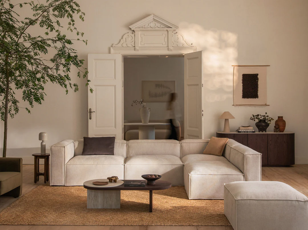 El sofá esquinero Nuria está diseñado para una relajación sin esfuerzo. Con asientos suaves y profundos y cojines de felpa, proporciona una sensación genuinamente acogedora. Su forma geométrica, pero suave, lo hace perfecto para mañanas lentas, tardes perezosas y noches acogedoras con su familia o amigos. – Comodidad inigualable – Asientos profundos y ultra suaves para una sensación de hundirse. – Suavidad similar a la nube – El relleno del asiento y del respaldo contiene un 50 % de pluma. – Adaptado a ti – El diseño modular flexible de la colección Nuria te permite organizarla como quieras. – Estabilidad segura – Los conectores tipo cocodrilo mantienen cada módulo firmemente alineado. – Opción que admite mascotas – Recomendamos seleccionar tapicería de terciopelo para los dueños de mascotas, que resista el pelo y los arañazos de las mascotas. – Hecho para durar – Fabricado en Europa con materiales de alta calidad para una durabilidad duradera. – Explore la variedad de piezas de la colección Nuria, incluyendo juegos de sofás completos y varios módulos.